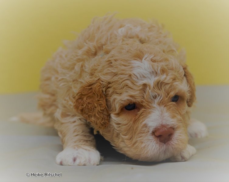 Lagotto-Mama Avita als Welpe-auch sie hatte 4 weiße Pfoten und natürlich einen Schwanz- stimmt's Kirsten?