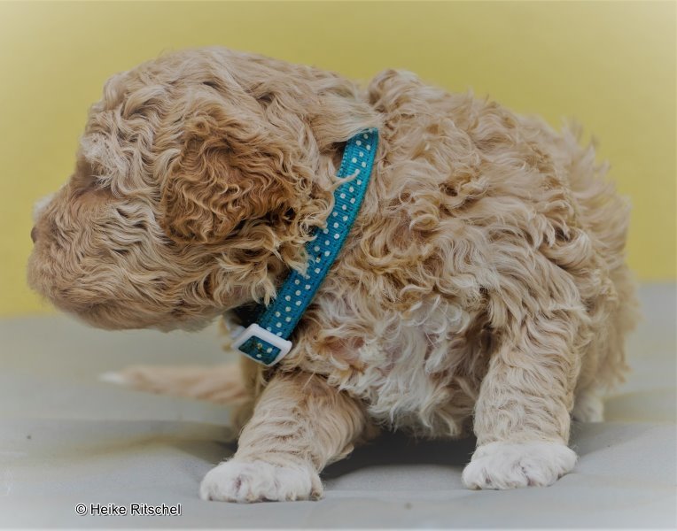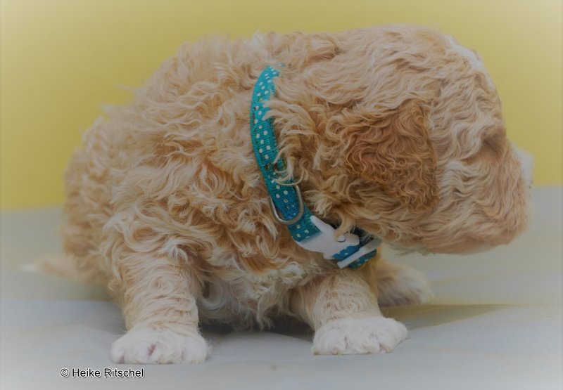 Rüden : gefleckt wie Papa Brando, mit Band blau und Band gold